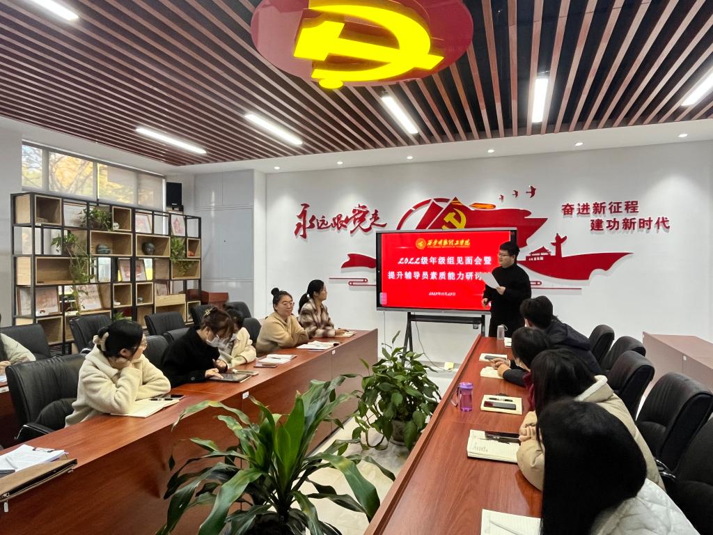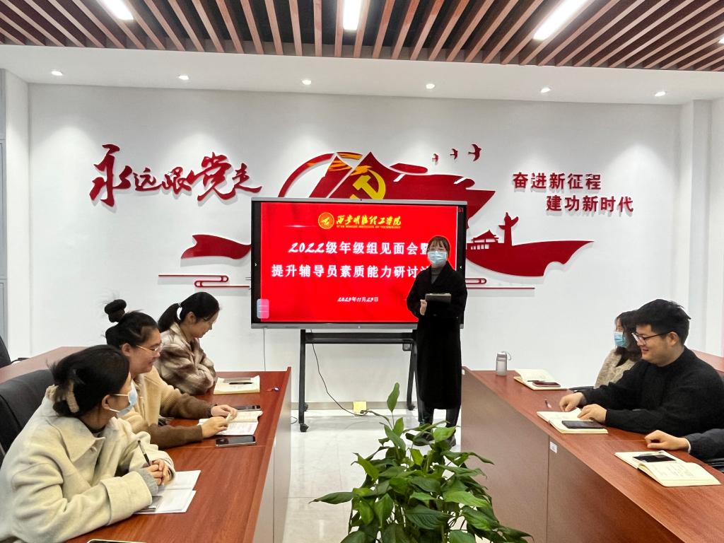 为加快推进必赢官网辅导员队伍专业化职业化建设,进一步提高必赢官网辅导员的综合素质和工作能力,11月23日上午,2022级年级组在明志楼北108党群服务中心开展年级组见面会暨辅导员素质能力提升专题研讨沙龙,2022级全体辅导员参会,会议由年级组组长李秋红主持。