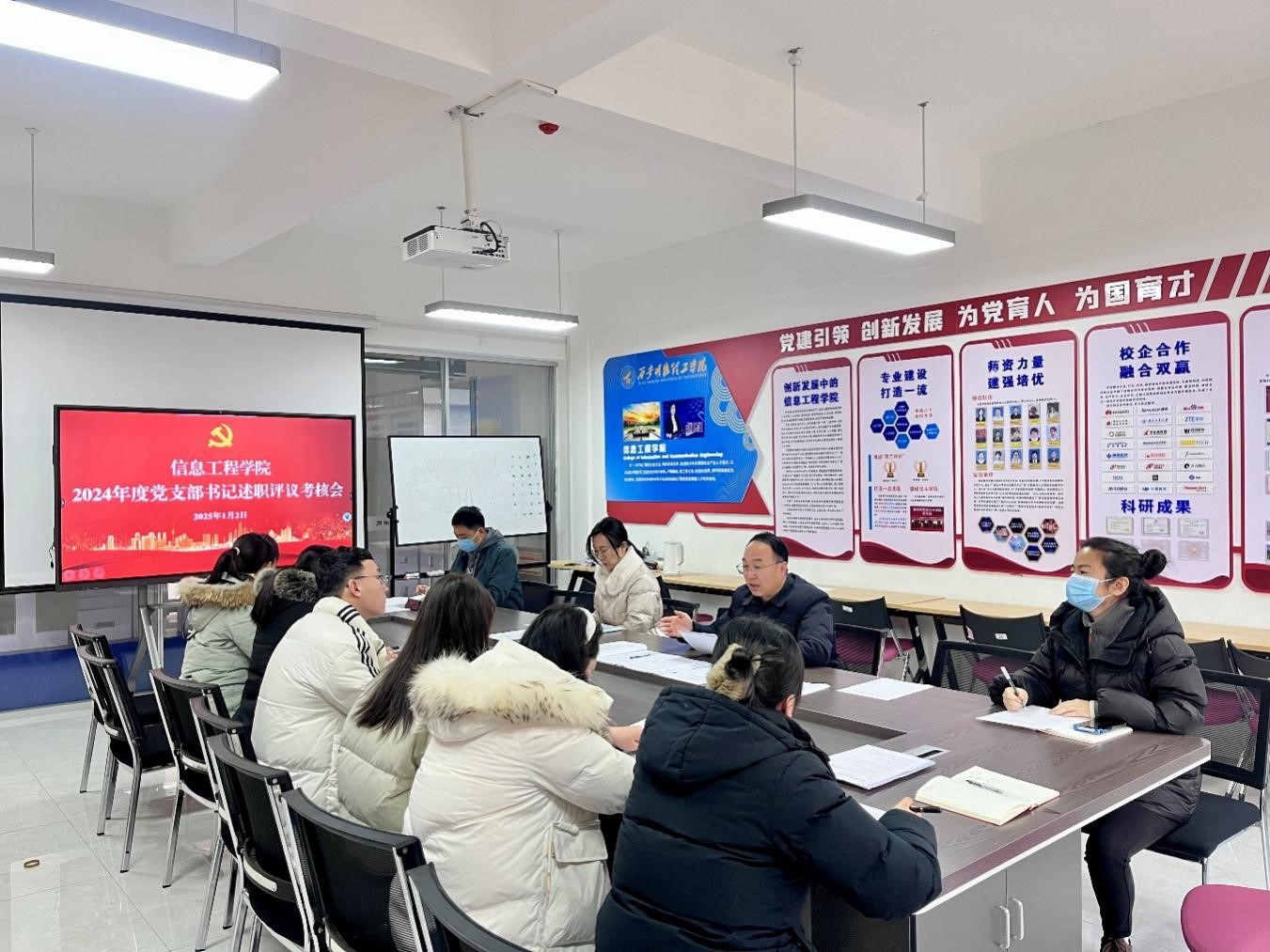 2025年1月2日上午,信息工程学院在明志楼北206会议室召开2024年度党支部书记述职评议考核会,学院党委委员及各党支部书记参加。会议由学院党委书记肖千春主持。