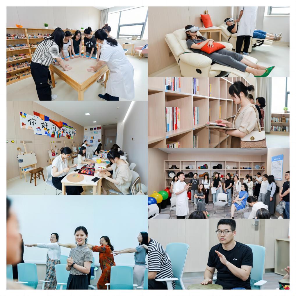 6月15日下午,在音乐治疗实训体验中,学员们参观了西安国际医学中心参观心理评估与治疗,并分别参与了陶艺团体、VR团体、鼓圈音乐实训、团体沙盘体验、绘画疗愈和五行球馆音乐疗愈等多个团体活动,深入了解音乐治疗专业医学治疗的魅力。